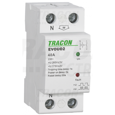 Rele AUTOMATICO 2 POLI Di Sovratensione e di Minima Tensione 175V / 265V EVOUO2 TRACON