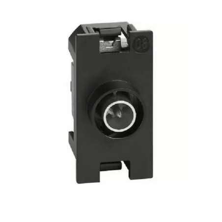 Presa coassiale diretta per impianti di antenna monoutenza anche telealimentati e centralizzati ed impianti via satellite monoutente e centralizzati con passaggio di corrente e di segnale per la selezione dei canali - morsetti di collegamento schermati con viti imperdibili - Ø 9,5 mm - connettore maschio - 1 modulo
